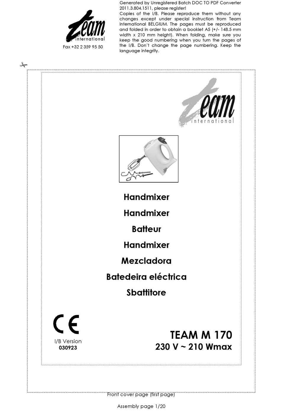 Copies of the I/B. Please reproduce them without any changes except under special instruction from Team International BELGIUM. The pages must be reproduced and folded in order to obtain a booklet A5 (+/- 148.5 mm width x 210 mm height). When folding, make sure you keep the good numbering when you turn the pages of the I/B.
