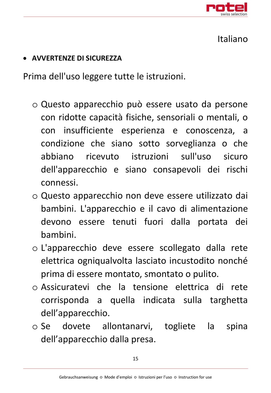Gebrauchsanweisung ○ Mode d'emploi ○ Istruzioni per l'uso ○ Instruction for use
