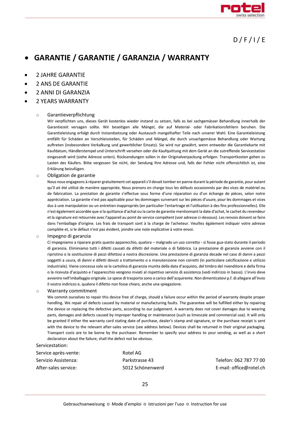 E-mail: office@rotel.ch