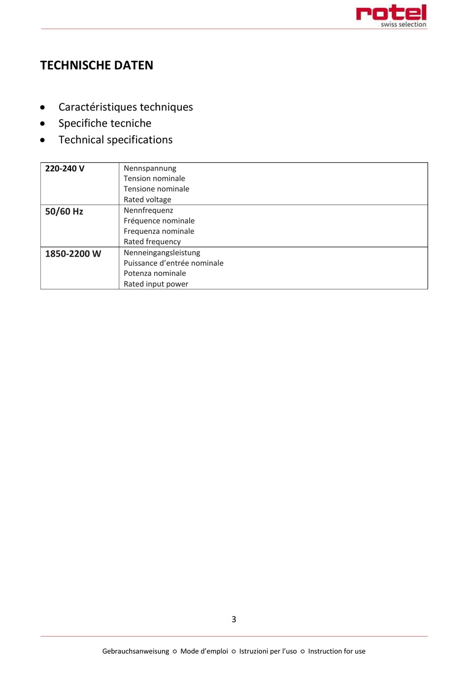 Gebrauchsanweisung ○ Mode d'emploi ○ Istruzioni per l'uso ○ Instruction for use