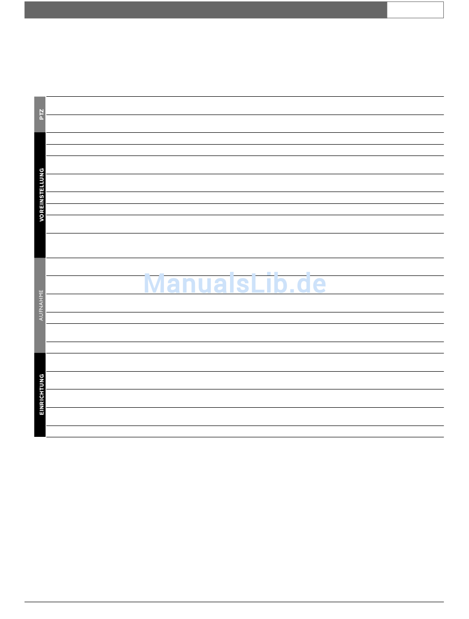 sie aufgenommen werden (On/Off). Voreinstellungen stehen immer noch für manuelle Zugriffe zur Verfügung.