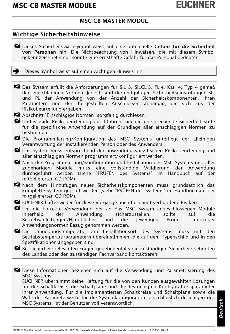 Um die korrekte Verwendung der an das MSC System angeschlossenen Module