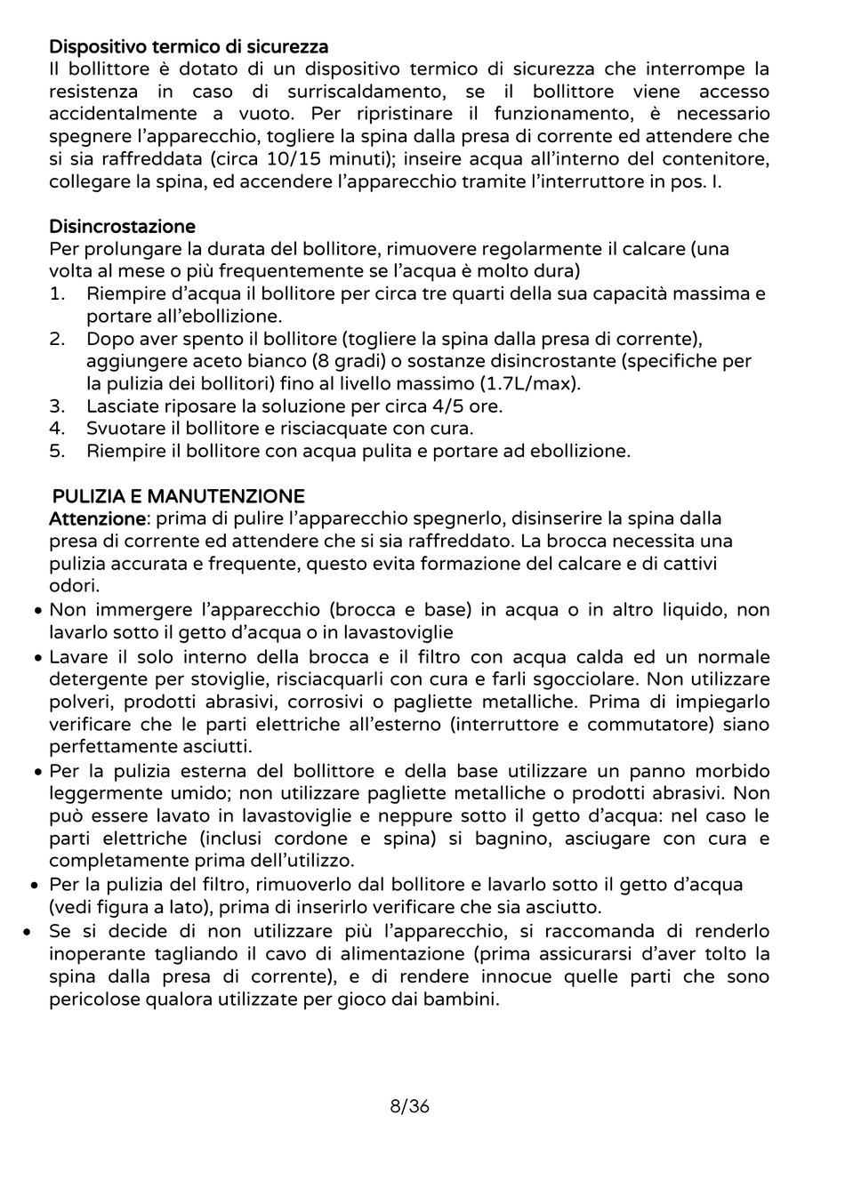 Il bollittore è dotato di un dispositivo termico di sicurezza che interrompe la