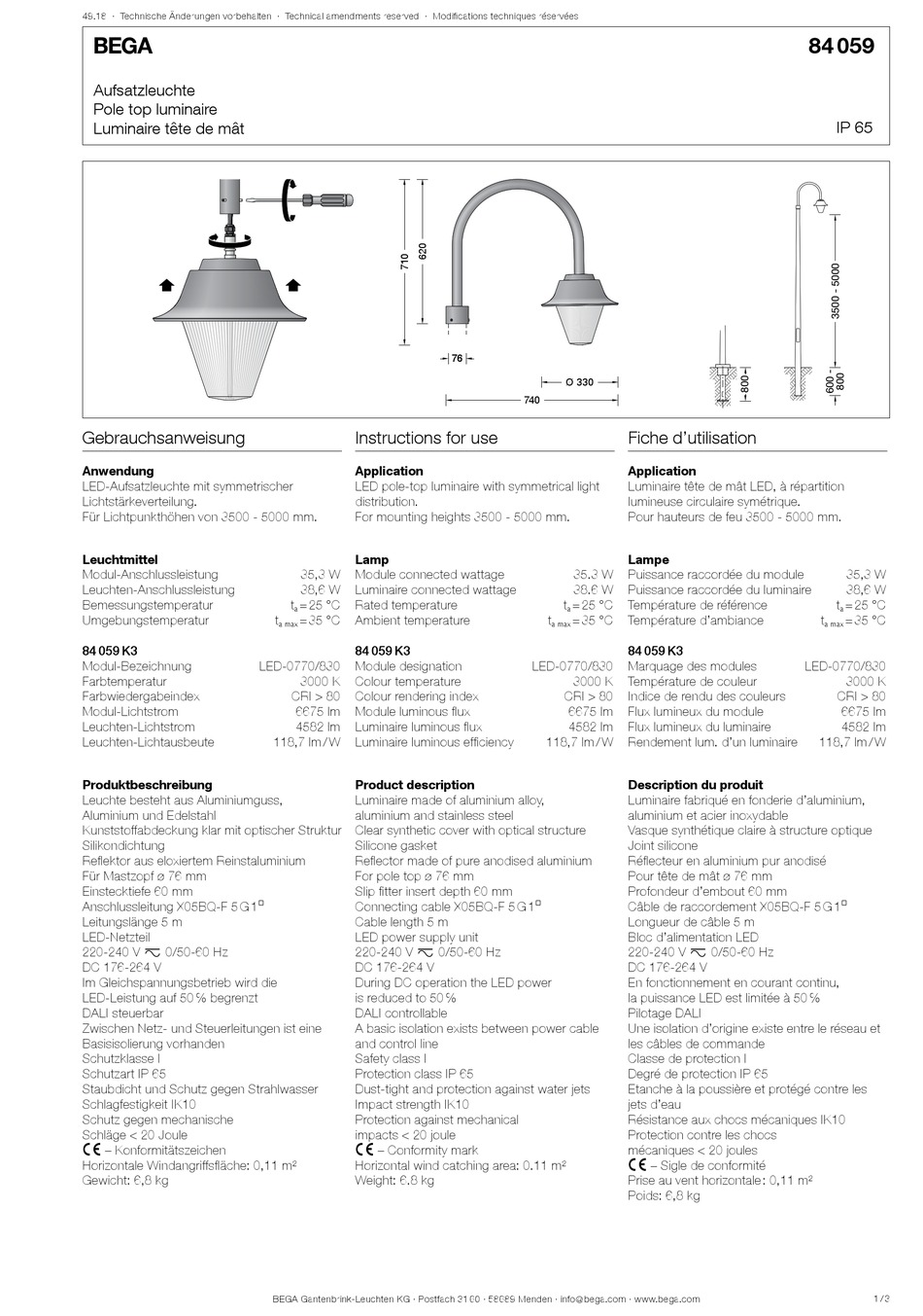 BEGA Gantenbrink-Leuchten KG · Postfach 31 60 · 58689 Menden · info @ bega.com · www.bega.com