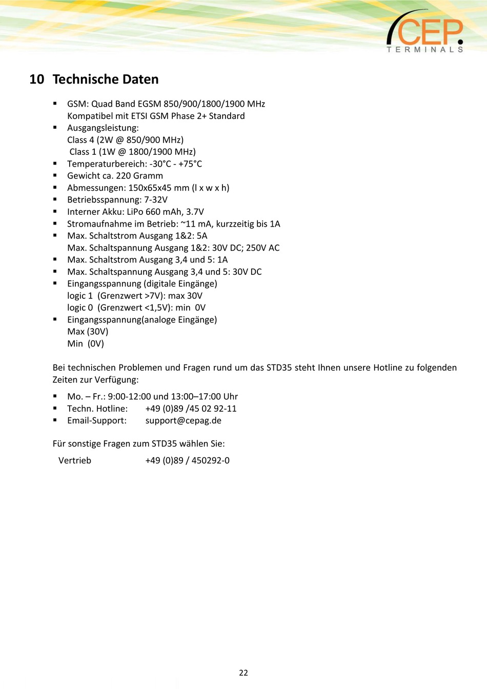 Bei technischen Problemen und Fragen rund um das STD35 steht Ihnen unsere Hotline zu folgenden