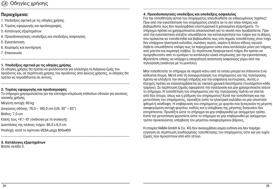Η εταιρία HAMA GmbH & Co. KG δεν αναλαμβάνει καμία ευθύνη και δεν παρέχει