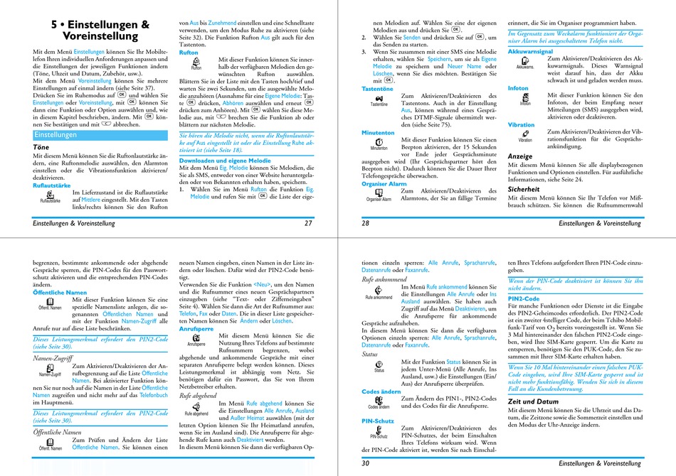 (Töne, Uhzeit und Datum, Zubehör, usw.).