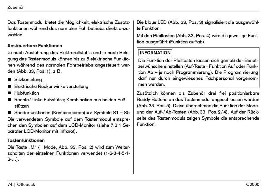 Je nach Ausführung des Elektrorollstuhls und je nach Bele-