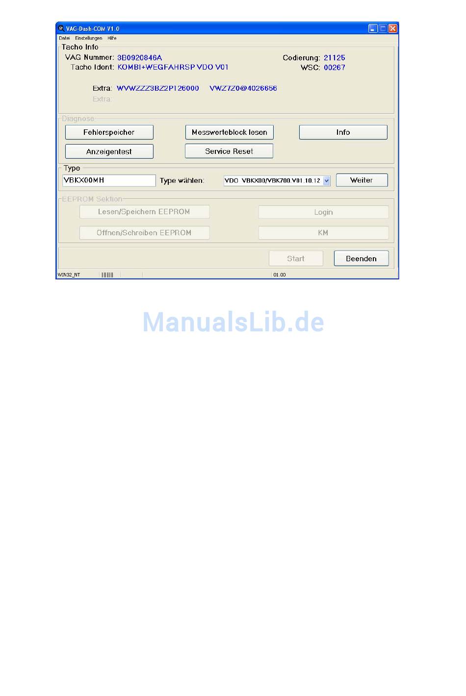 VAGdashCOM Sreenshot Tachoinformation