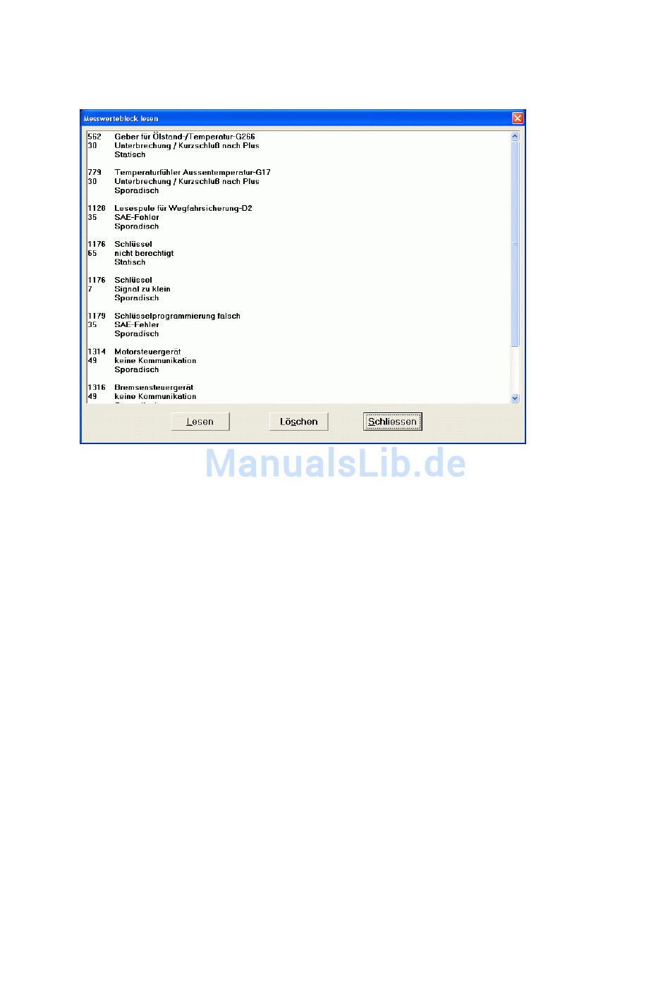 Nachdem Sie die Schaltfläche Fehlerspeicher gedrückt haben
