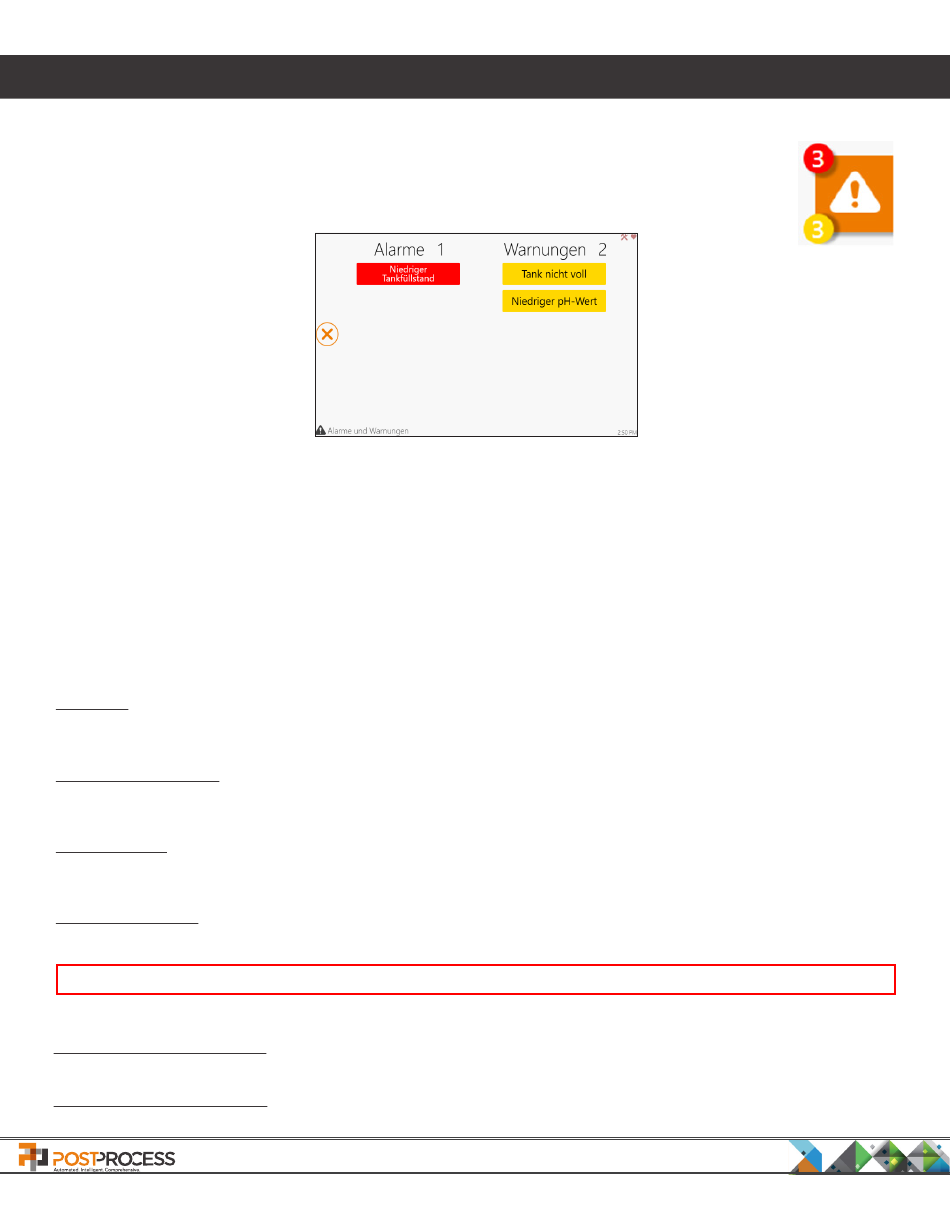um auf den Bildschirm Alarme und Warnungen zu gelangen. Auf dem Bildschirm (Abbildung 25. Bildschirm