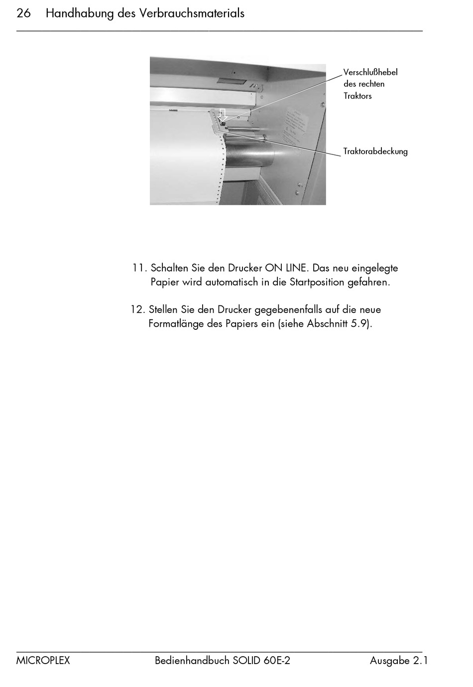 11. Schalten Sie den Drucker ON LINE. Das neu eingelegte