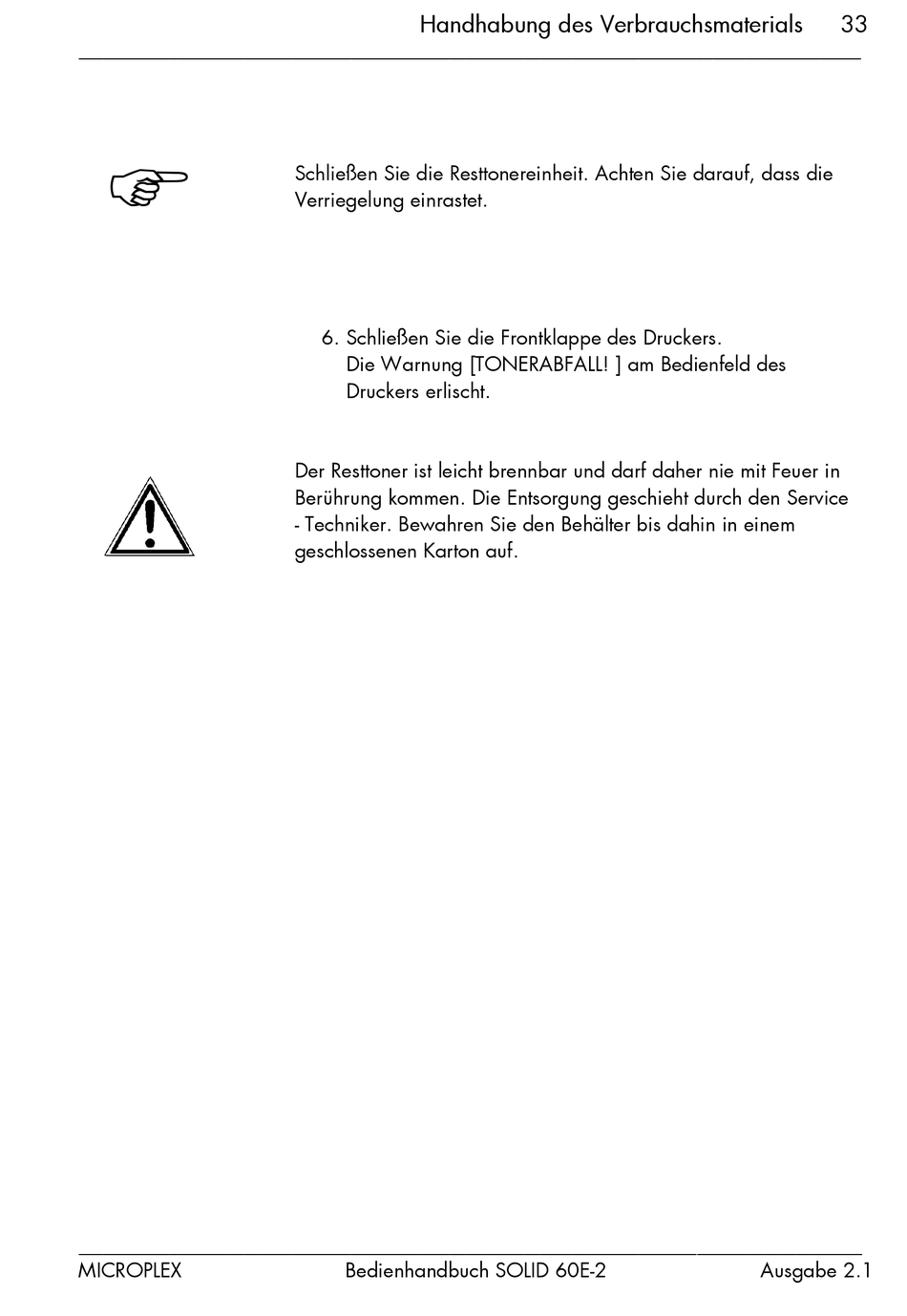Der Resttoner ist leicht brennbar und darf daher nie mit Feuer in