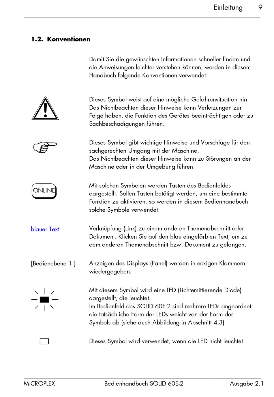 Mit solchen Symbolen werden Tasten des Bedienfeldes