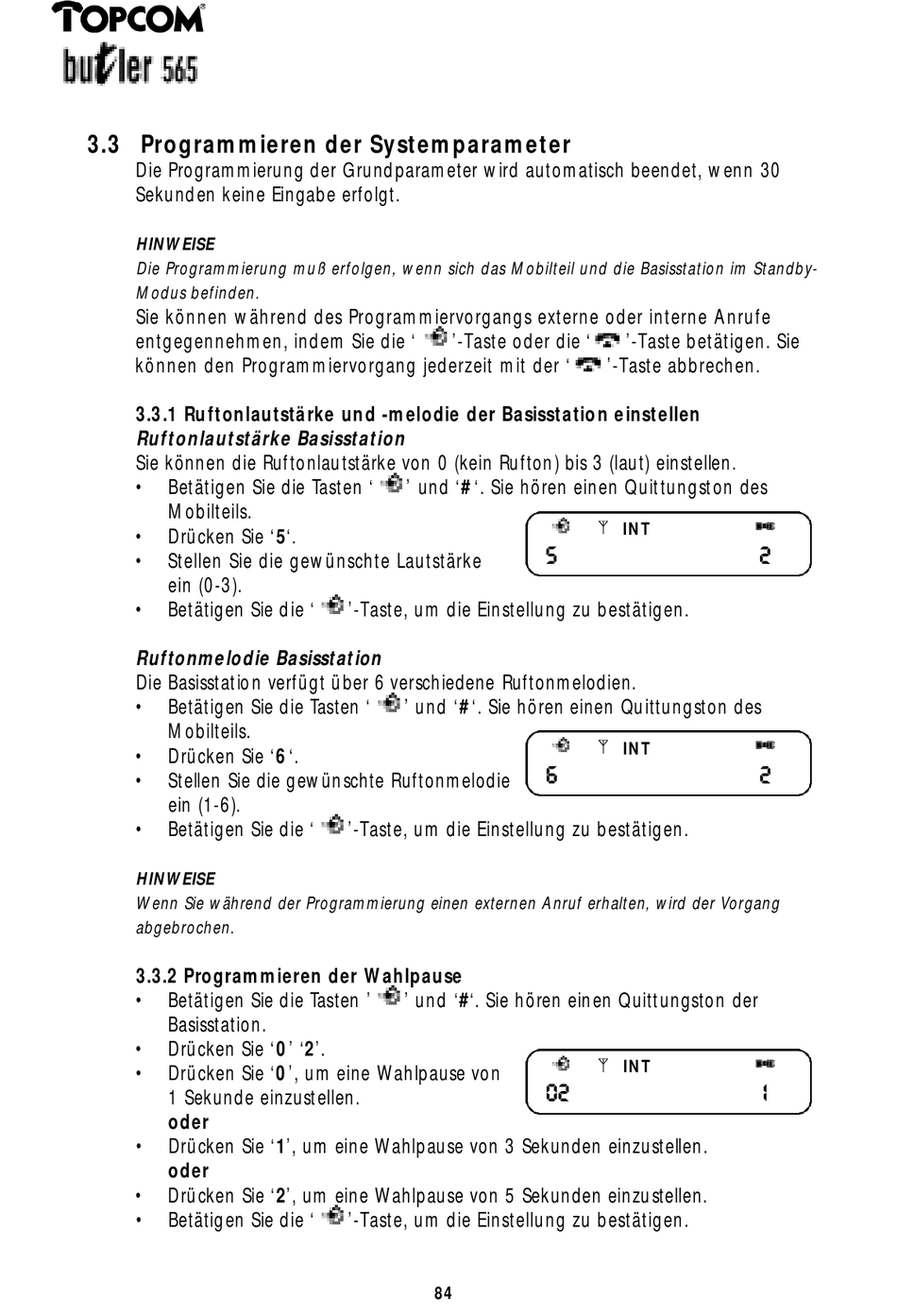 3.3.2 Pro g r a m m i e ren der Wa h l p a u s e