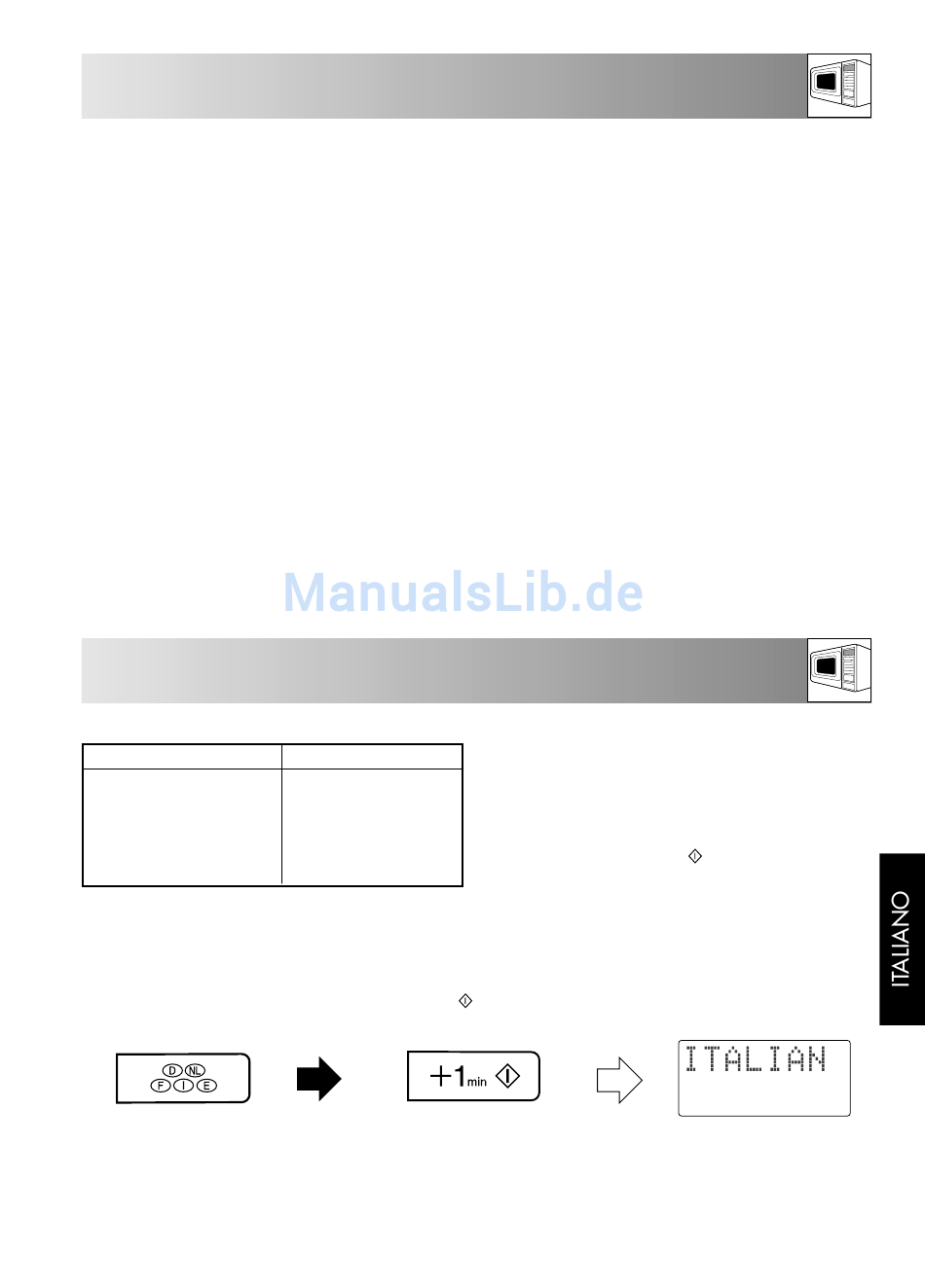 comparirà la scritta "SELEZ. LINGUA" in 5 lingue.