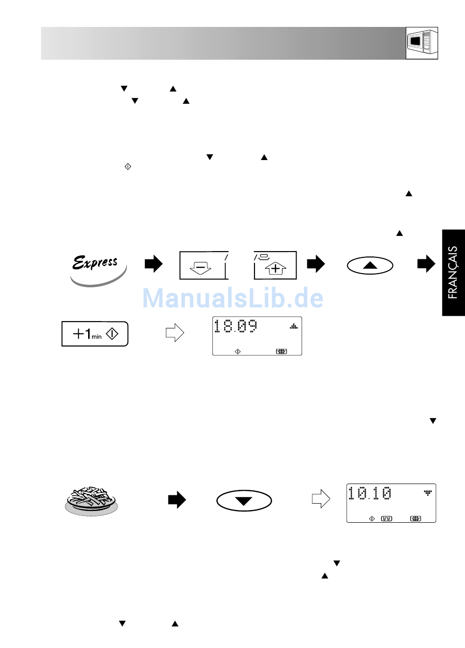 Vous pouvez augmenter ou diminuer la durée de cuisson par multiples de 1 minute en appuyant sur les