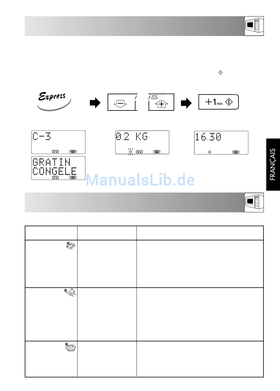 Exemple: Pour faire cuire des gratin de 1,0 kg avec CUISSON AUTOMATIQUE.