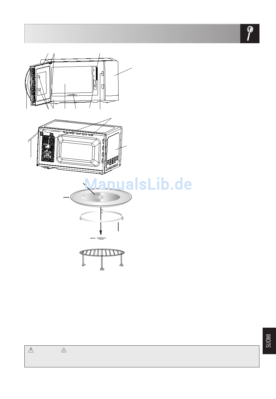 • Ruoka ja ruoka-astiat asetetaan aina pyörivälle kuumennusalustalle kypsennystä varten.