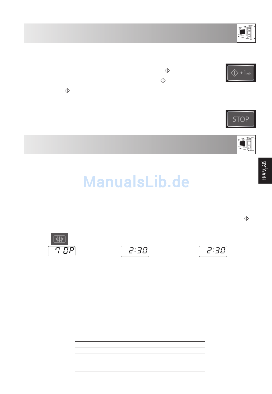 • Lorsque la cuisson / décongélation est terminée, ouvrez la porte ou pressez la touche STOP et l'heure s'affi -