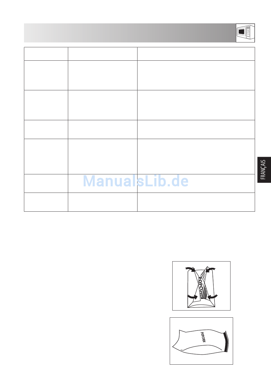 2. Si/Lorsque le sachet de popcorn gonfle et ne peut pas