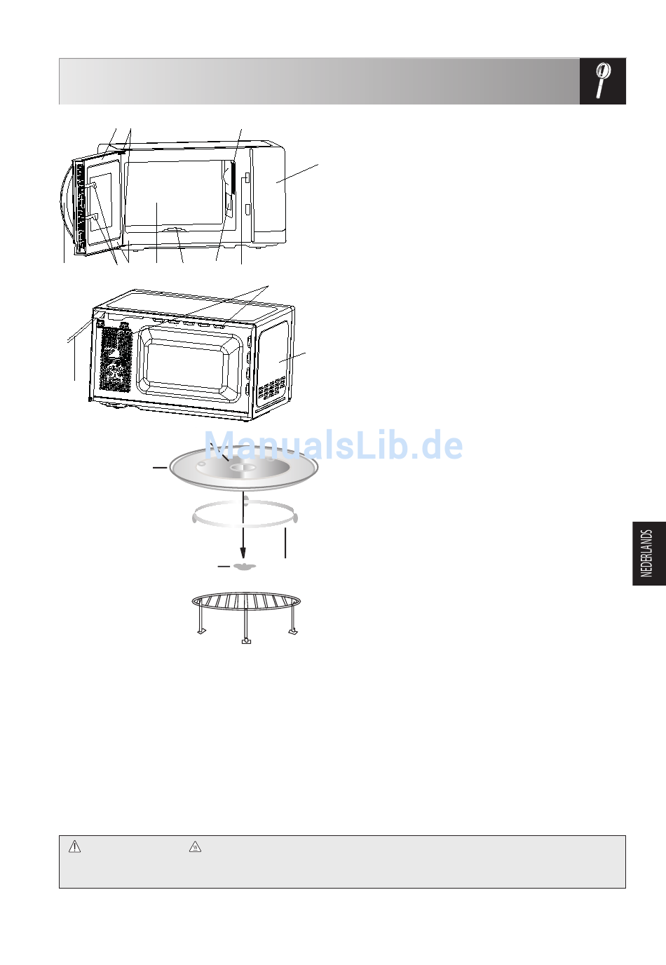 • Bedien de oven alleen als de draaitafel en draaisteun juist zijn geplaatst. Dit bevordert een grondige en