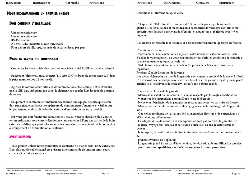 Les pièces échangées au titre de la garantie deviennent la propiété de la societé INAC.