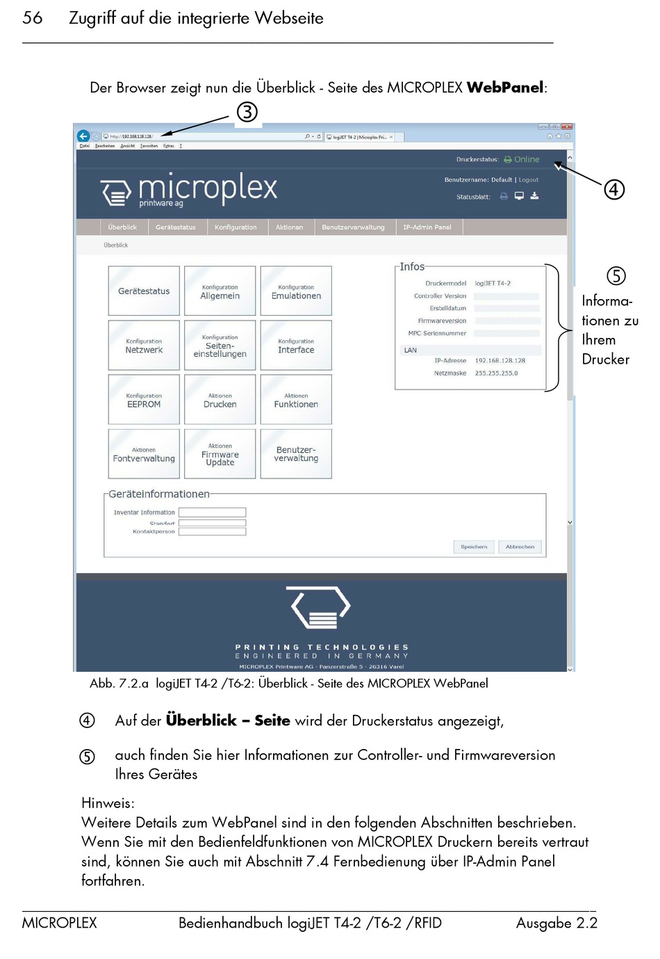 Abb. 7.2.a logiJET T4-2 /T6-2: Überblick - Seite des MICROPLEX WebPanel