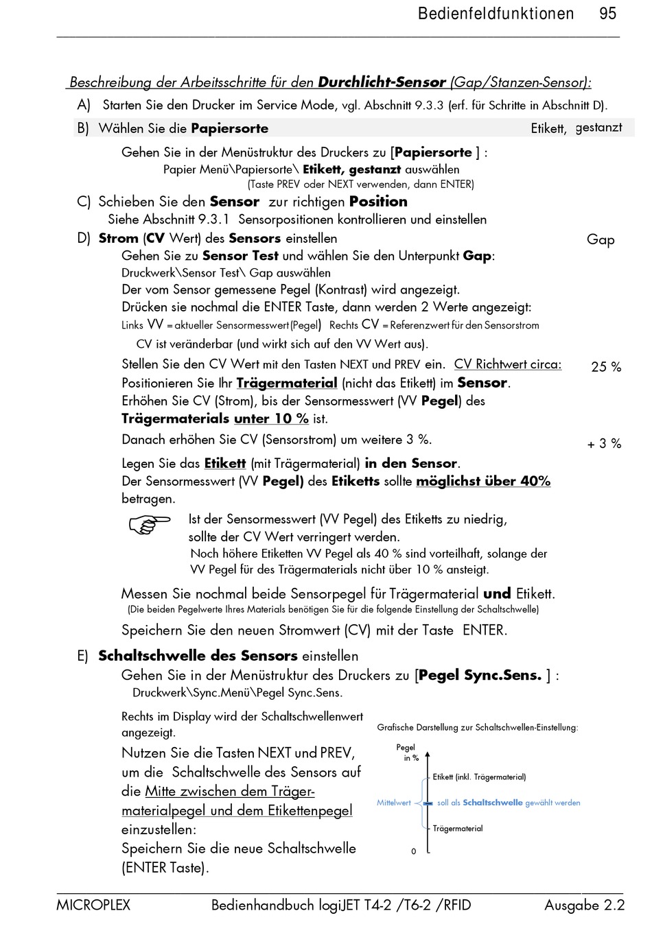Beschreibung der Arbeitsschritte für den Durchlicht-Sensor (Gap/Stanzen-Sensor):