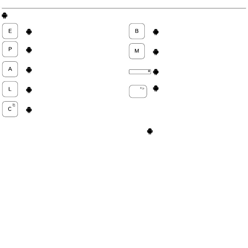 • Når du vil velge en Android-tast, trykker du og holder nede