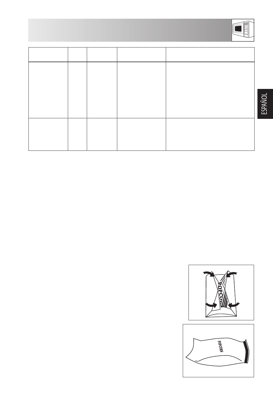 Información importante sobre la función de palomitas para microonda:
