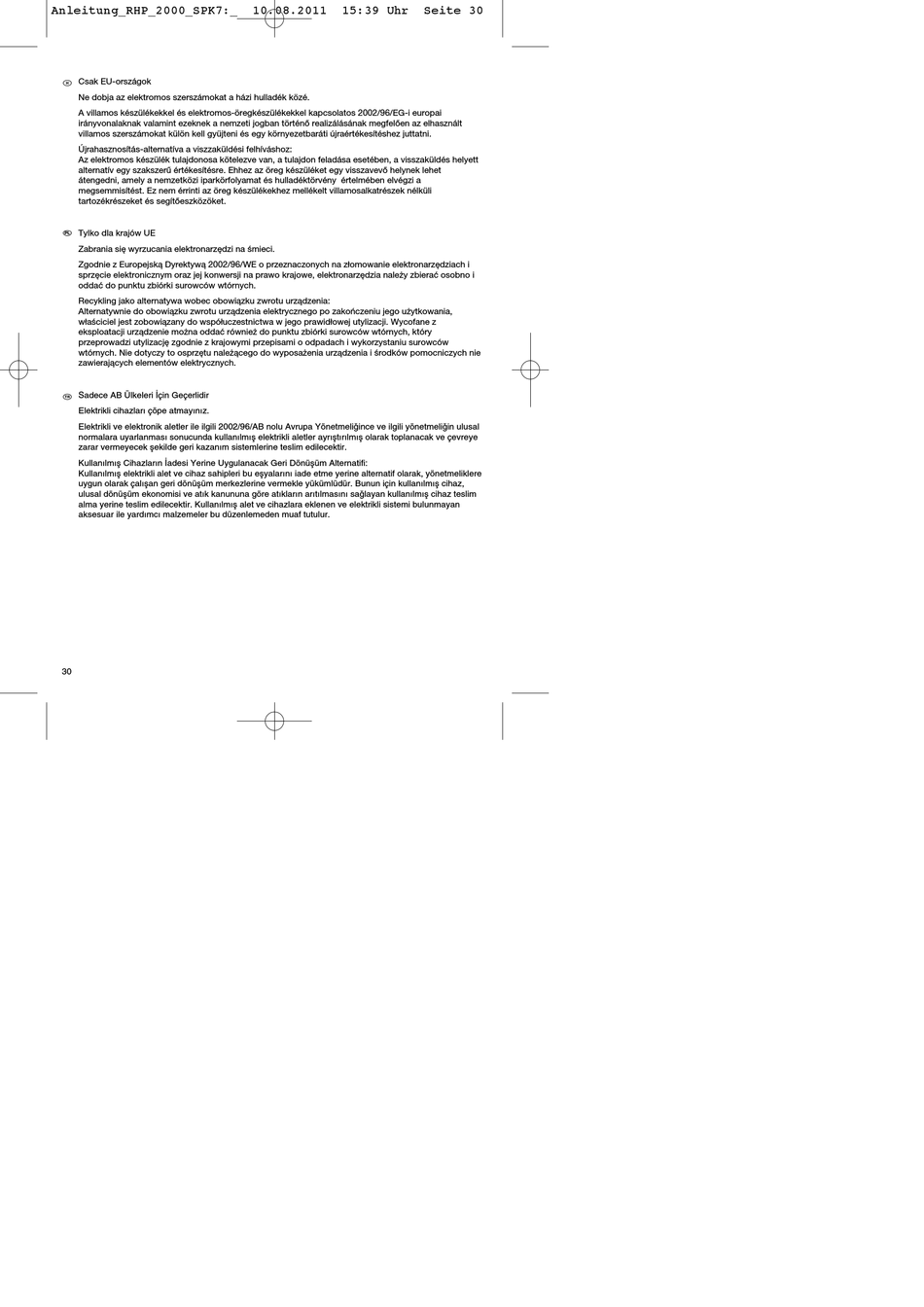 Kullan∂lm∂μ elektrikli alet ve cihaz sahipleri bu eμyalar∂n∂ iade etme yerine alternatif olarak, yönetmeliklere