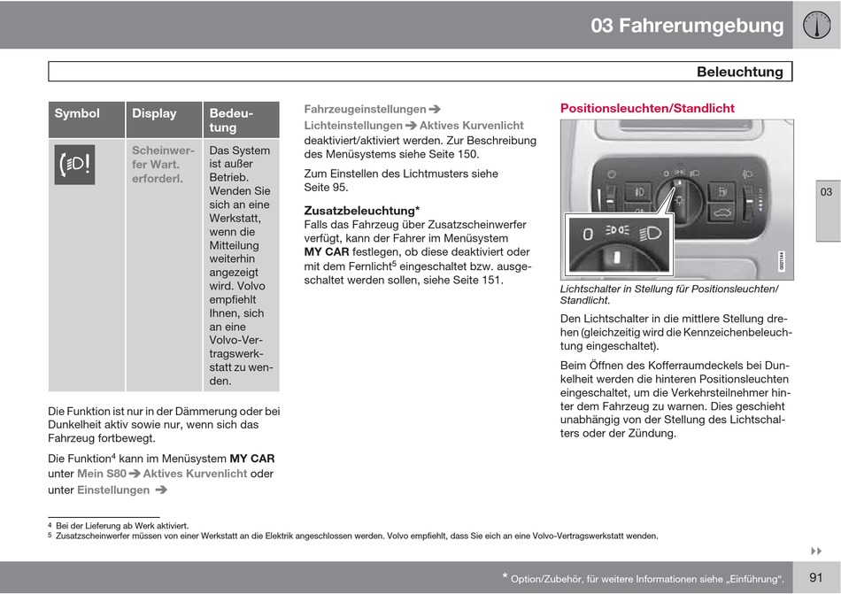 Zusatzscheinwerfer müssen von einer Werkstatt an die Elektrik angeschlossen werden. Volvo empfiehlt, dass Sie eich an eine Volvo-Vertragswerkstatt wenden.
