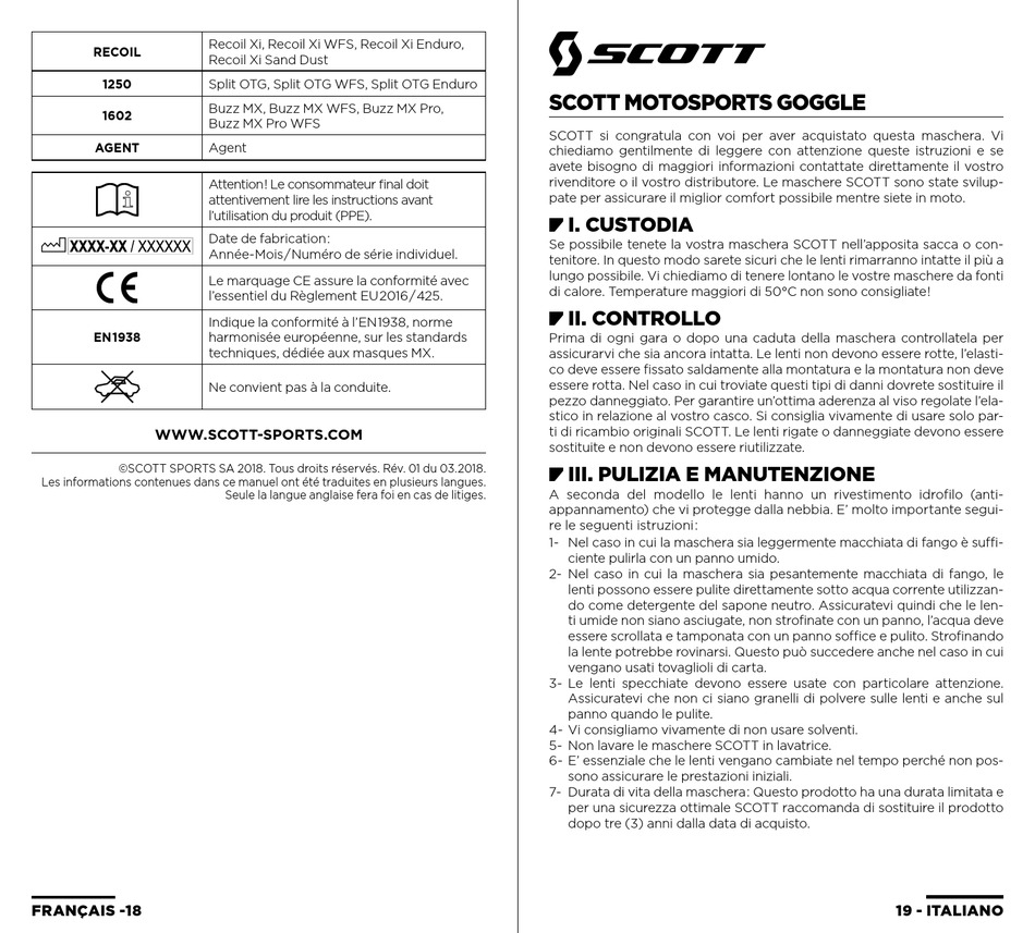 ©SCOTT SPORTS SA 2018. Tous droits réservés. Rév. 01 du 03.2018.