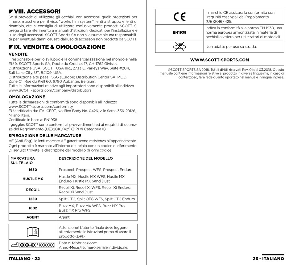 ©SCOTT SPORTS SA 2018. Tutti i diritti riservati Rev. 01 del 03.2018. Questo