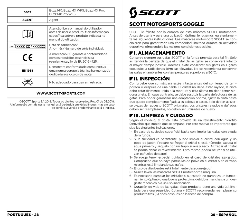 te las siguientes instrucciones. Las máscaras motorsport SCOTT se con-