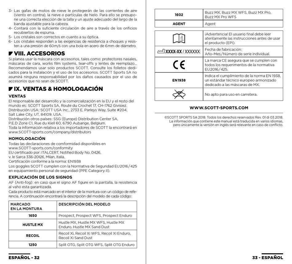 ©SCOTT SPORTS SA 2018. Todos los derechos reservados Rev. 01 di 03.2018.