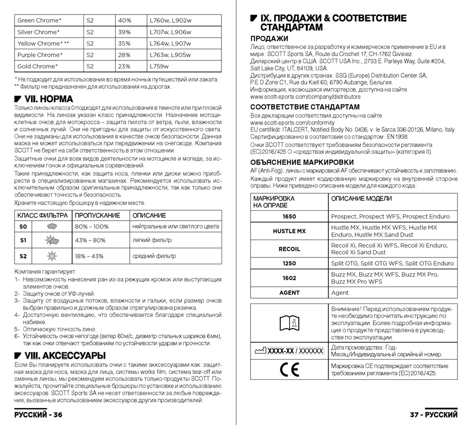 сменные линзы, мы рекомендуем использовать только продукты SCOTT. По-