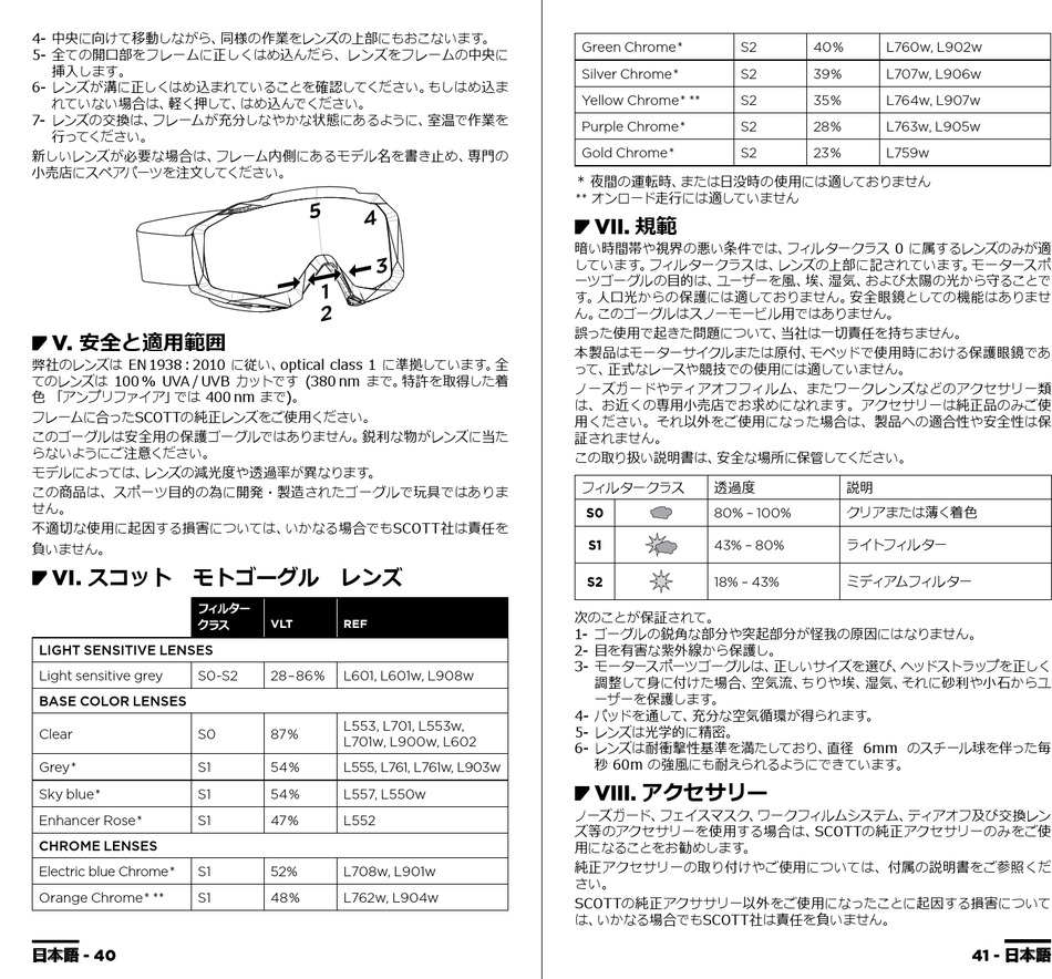 • VI. スコット モトゴーグル レンズ