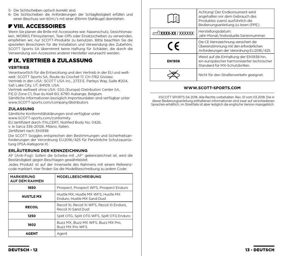 Die SCOTT Goggles entsprechen den Bestimmungen und Sicherheitsan-