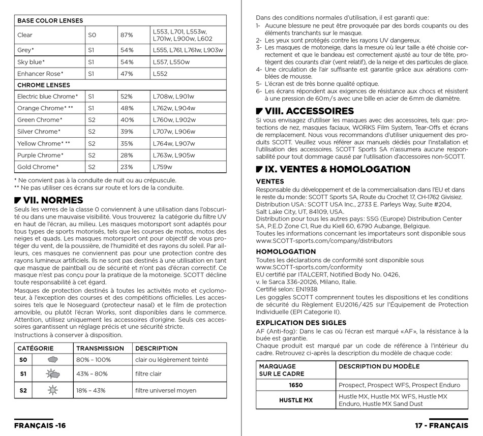Les goggles SCOTT comprennent toutes les dispositions et les conditions