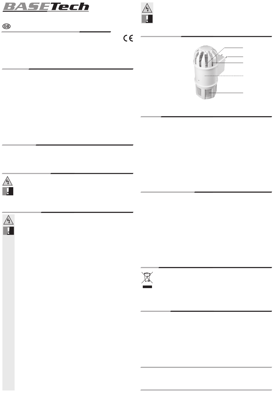 • Connect the mains plug (2) of the insect catcher to a suitable wall socket. The insect catching