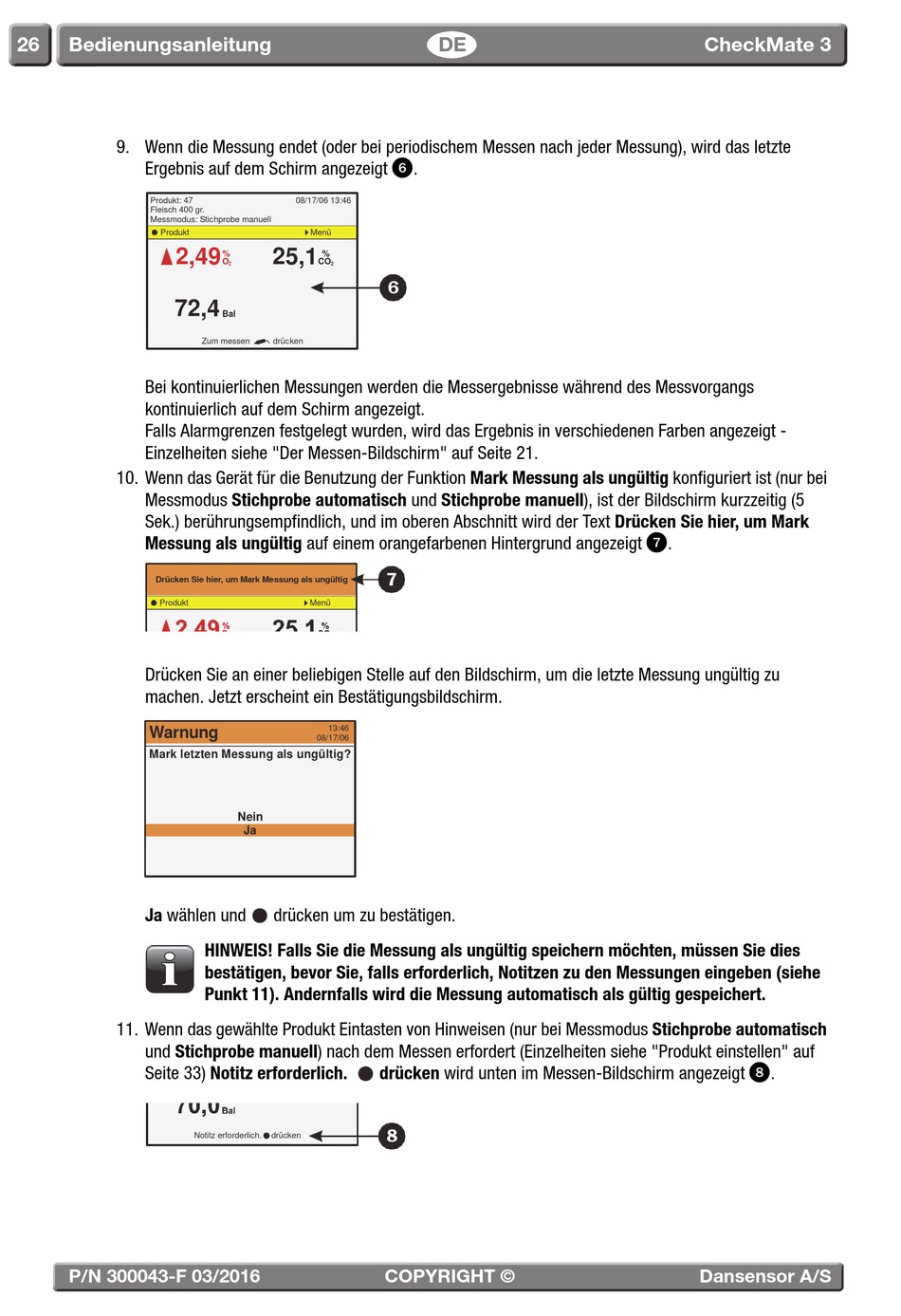 Punkt 11). Andernfalls wird die Messung automatisch als gültig gespeichert.
