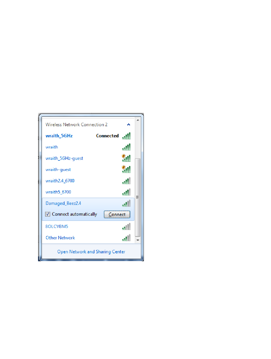 k jiné bezdrátové síti s názvem wraith_5GHz. Zobrazí se název vybrané bezdrátové sítě