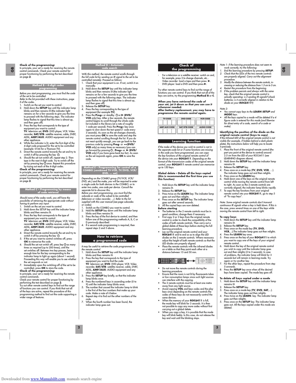 codes of both remote controls. Then carry out a