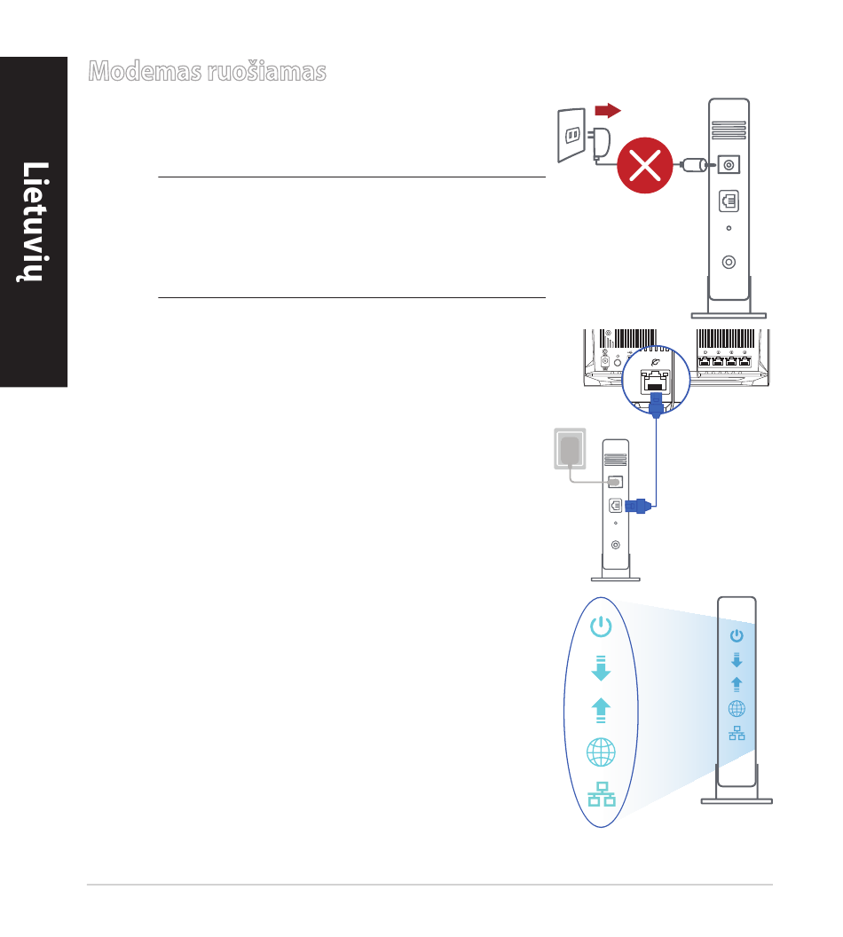 Ištraukite maitinimo kabelį / DsL modemą. Jei