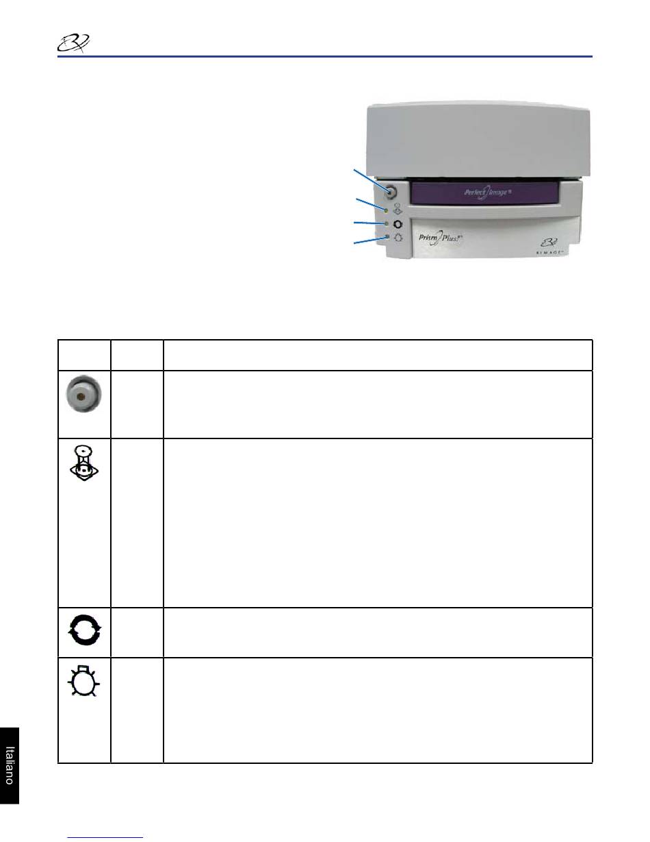 Lo stato delle spie descritto qui di seguito illustra le condizioni di una stampante Prism autonoma. Le stampanti Prism