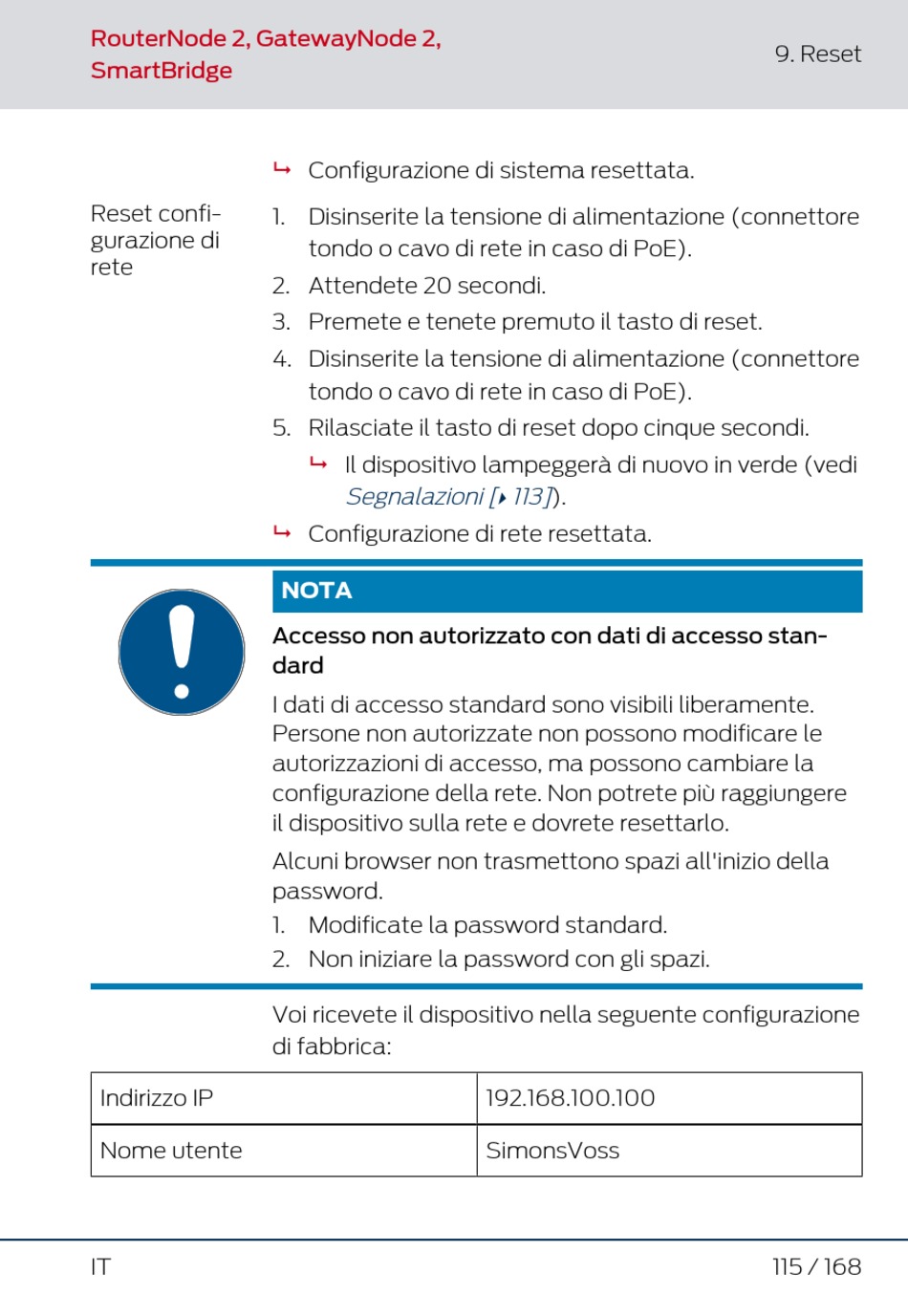 Configurazione di sistema resettata.