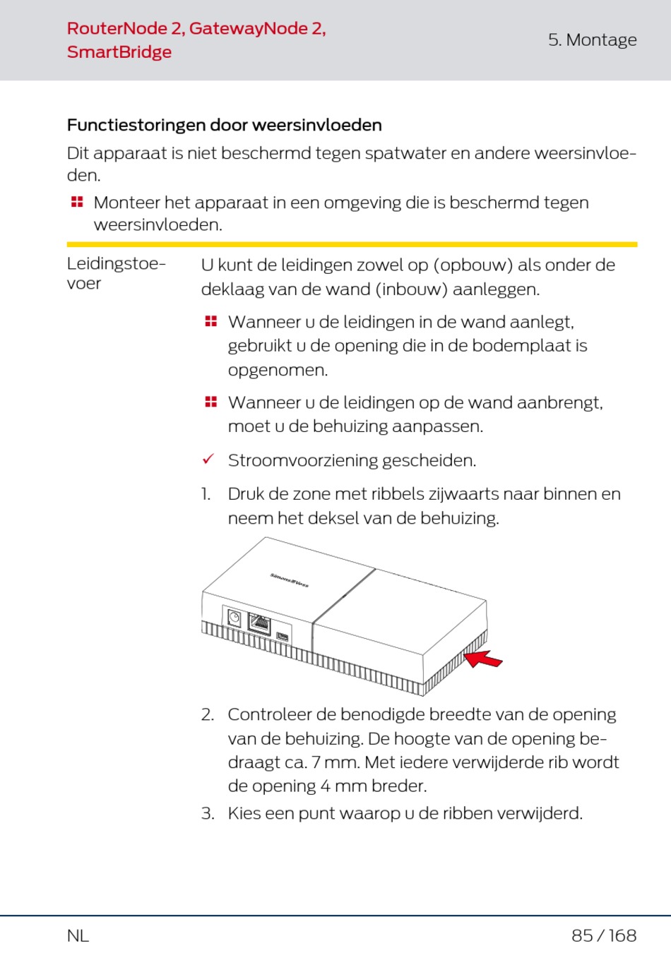 Wanneer u de leidingen in de wand aanlegt,