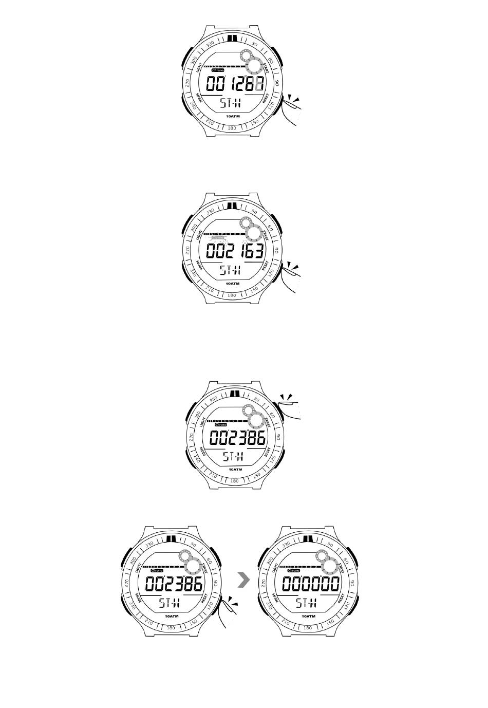 3.5 Drücken Sie die Reset-Taste einmal, um die 2. Runde anzuzeigen. Die Chronographenanzeige beginnt